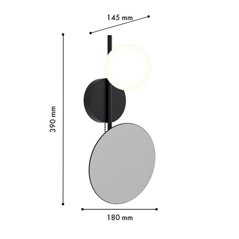 бра с каркасом в черном цвете, с защитой IP20 и цоколем G9, каркас с белым плафоном и увеличительным зеркалом.