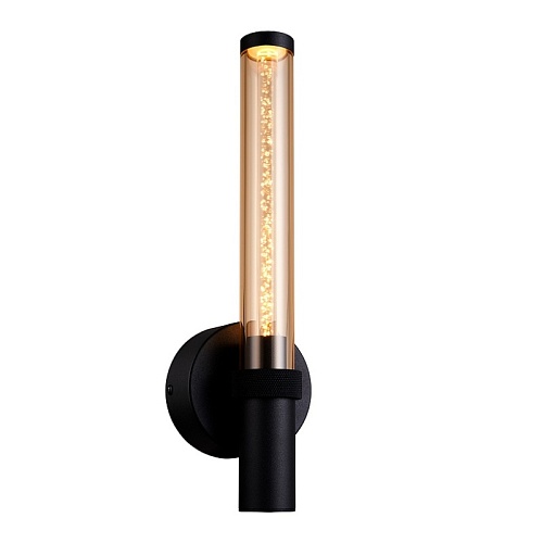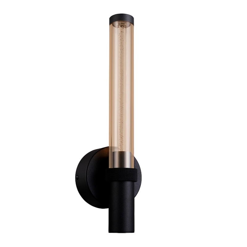 Металлический каркас черного цвета, плафон из акрила коньячного цвета с пузырками внутри.