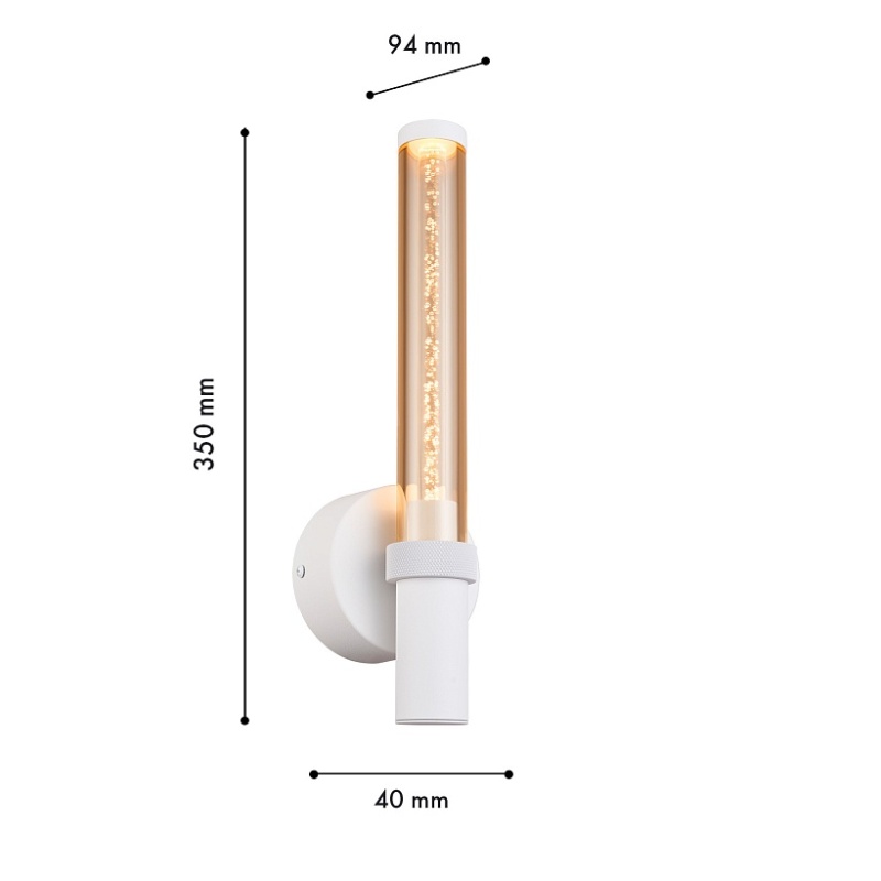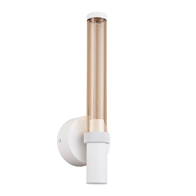 Металлический каркас белого цвета, плафон из акрила коньячного цвета с пузырками внутри.