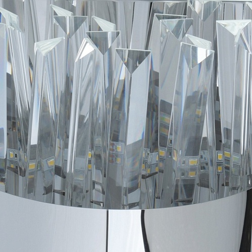 Основание выполнено из нержавеющей стали отполированной до зеркального блеска.Декор - прозрачный хрусталь прямоугольной формы.