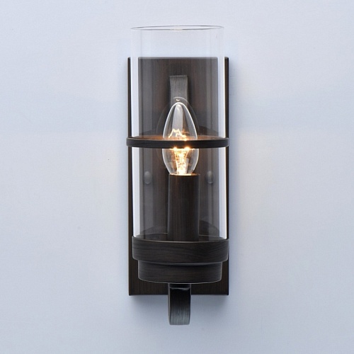 Основание светильника выполнено из металла и окрашено в черный цвет. Плафон из прозрачного стекла.