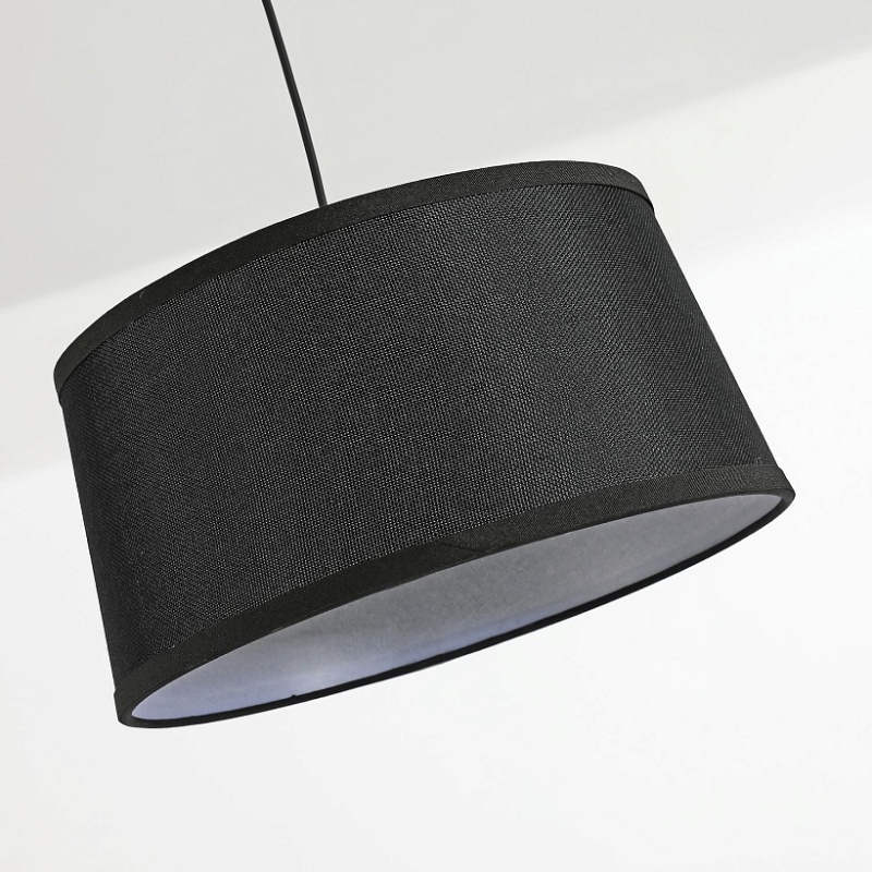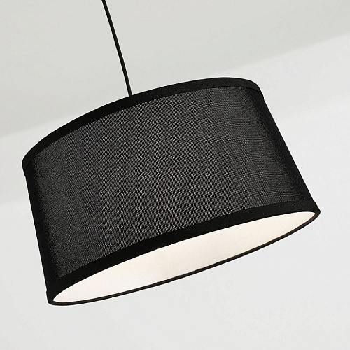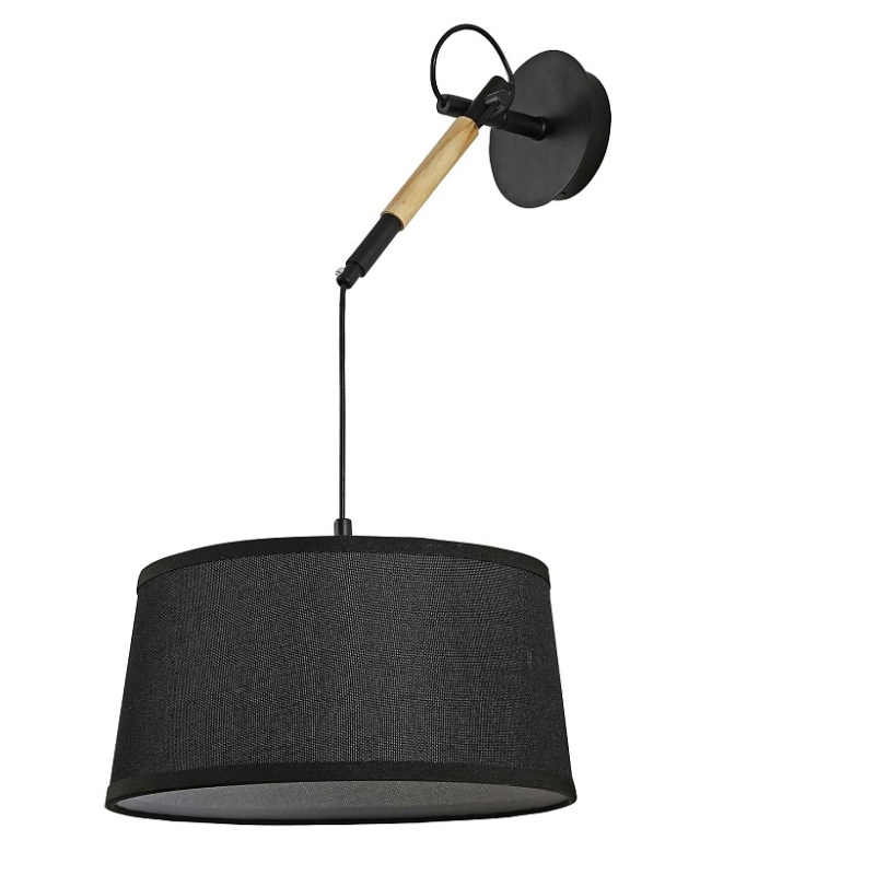 Металлический каркас черного цвета со вставкой под цвет дерева, плафон из черной ткани, светильник можно монтировать как на потолок, так и на стену.