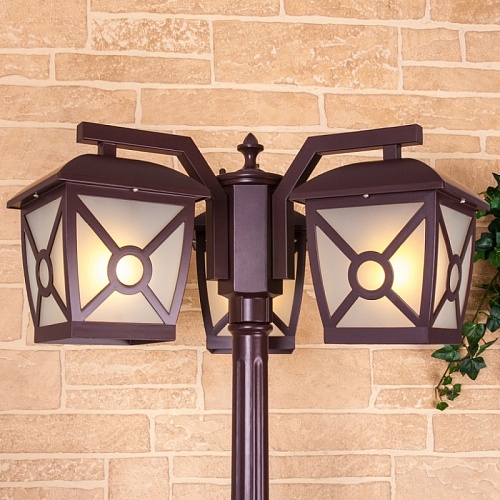 Отзывы о Уличный трехрожковый светильник на столбе f/3 коричневый ip33 Lussole Columba GL 1022F/3