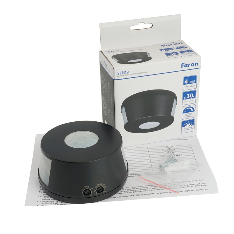 Характеристики Датчик движения 2000W 30m 360°(верт.) чёрный SEN19