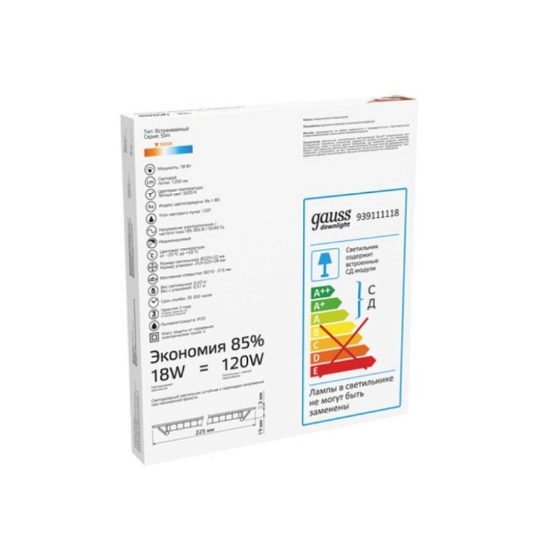 Характеристики Даунлайт GAUSS 939111118_GAUSS