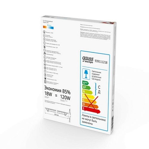 Характеристики Даунлайт GAUSS 939111218_GAUSS
