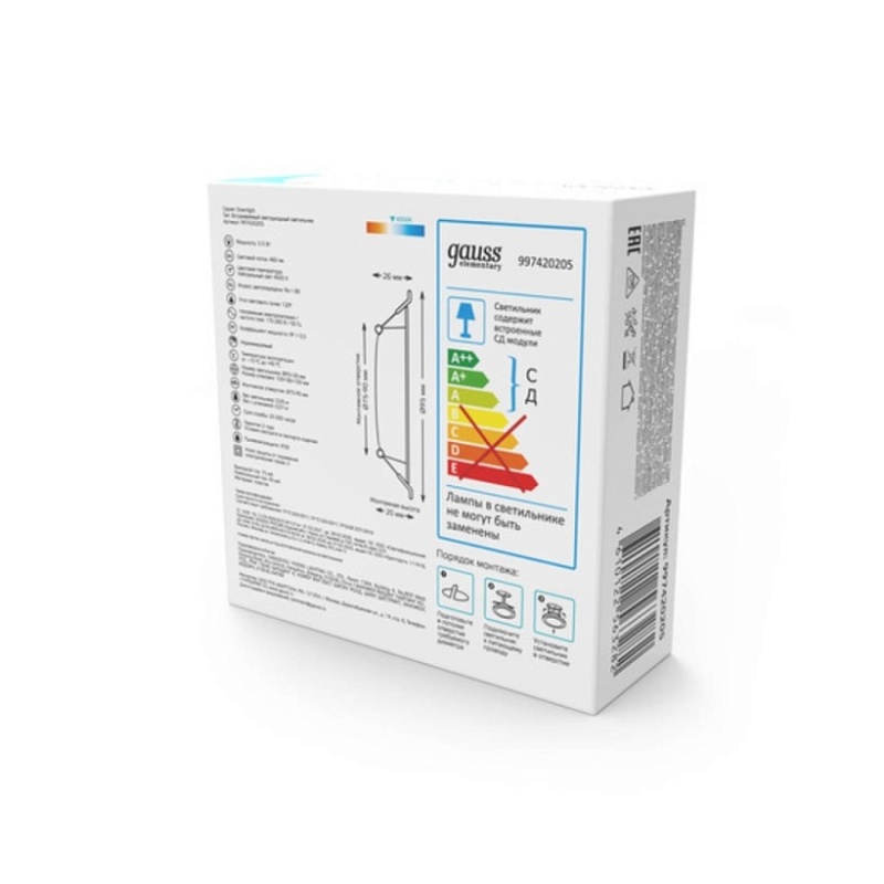Характеристики Даунлайт GAUSS 997420205_GAUSS
