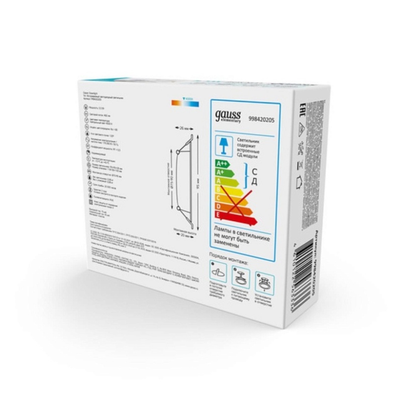 Характеристики Даунлайт GAUSS 998420205_GAUSS