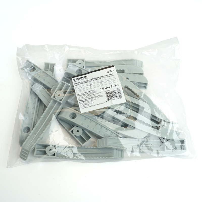 Держатель кабеля для прямого монтажа односторонний ДКО-2 STEKKER PMHR1G, серый (20шт в упак)