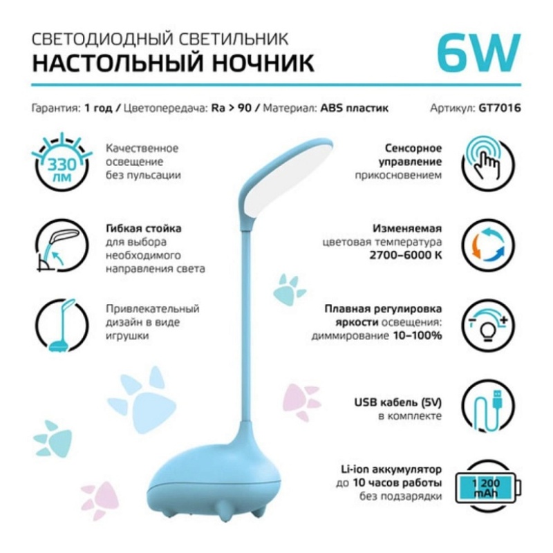 Характеристики Детская настольная лампа GAUSS GT7016_GAUSS