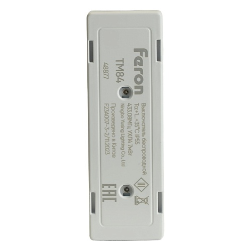 Характеристики Выключатель беспроводной FERON TM84 SMART, 7мВт, IP55, одноклавишный на 2 направления, стекло, белый