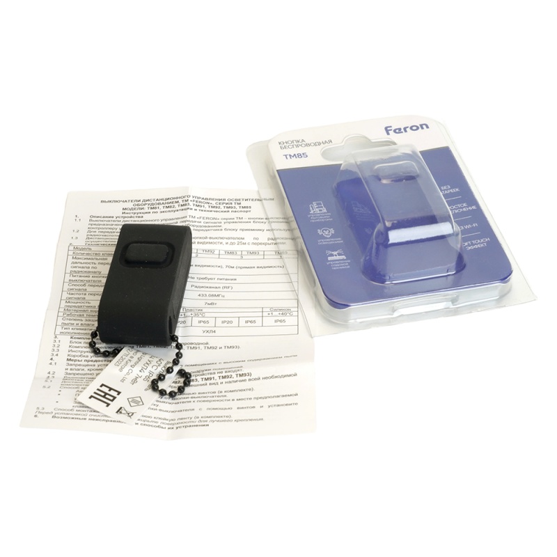 Характеристики Выключатель беспроводной FERON TM85 SMART, 7мВт, IP65, одноклавишный soft-touch, черный