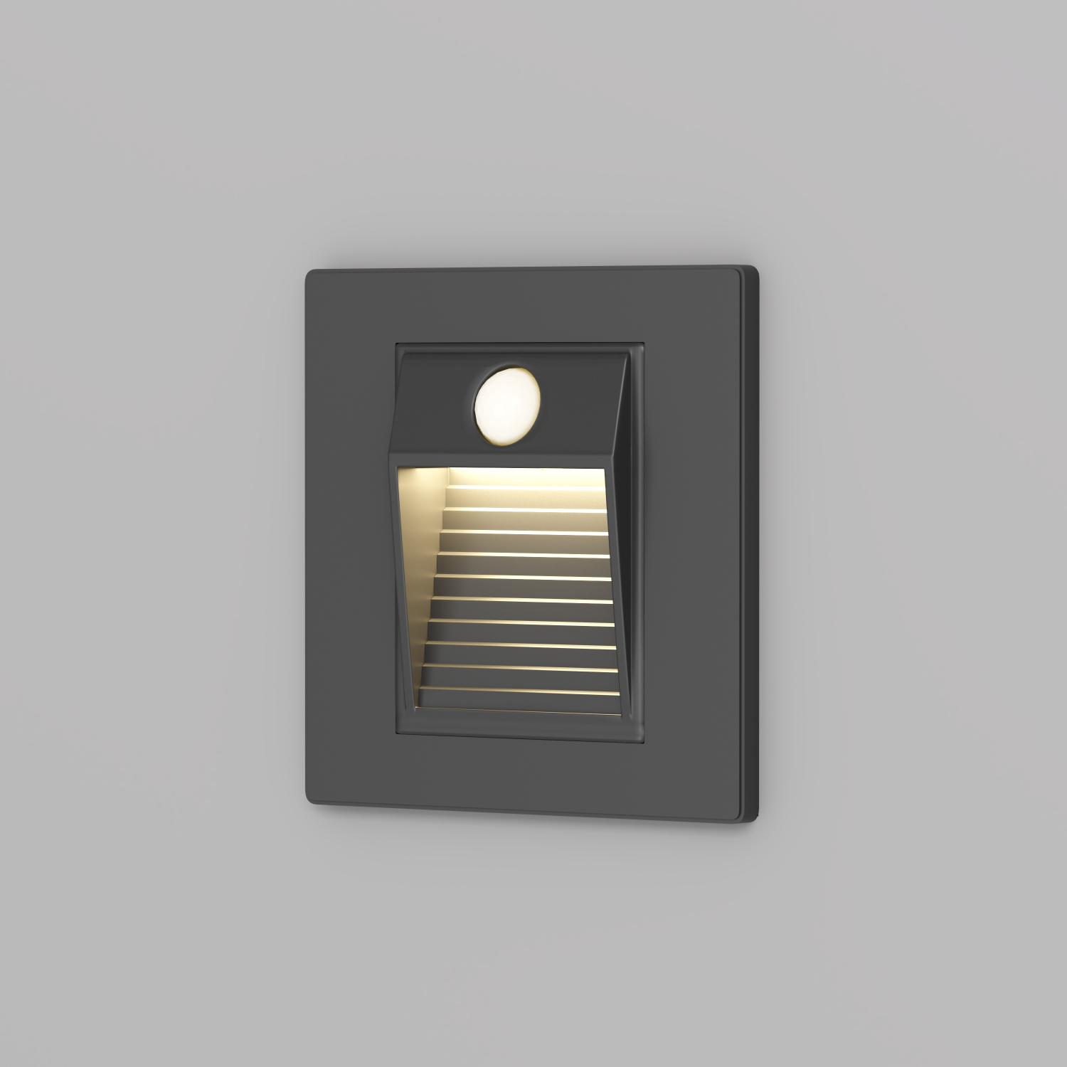 Встраиваемый в стену светильник с датчиком движения и\nвстроенным светодиодом. \nВыполняет роль подсветки ступеней и дежурного освещения\nкоридоров. \nБлагодаря встроенному датчику включается при наличии движения.\nТаймер отключения автоматически срабатывает через 30 секунд после прекращения\nфиксации движения датчиком.\nСветильники выполнены из современного термопластика.\nХарактерные особенности: прочность и полное отсутствие коррозии.\nЛегко очищается.\n\nДля установки требуется монтажная коробка DK3050-BX (приобретается отдельно). Срок гарантии 3 года.