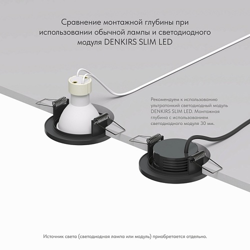 Серия компактных точечных светильников, выполненных в ультраминималистичном дизайне. Корпус светильника выполнен из алюминия методом литья под давлением и окрашен качественной порошковой краской. Лампа в комплект не входит. Для данной серии рекомендуем ультратонкие модули SLIM LED в качестве источника света, монтажная глубина всего 30 ммГлубина встраиваемой части с лампой GU10 (патрон входит в комплект): 59 мм. Высота лампы 54 мм. Глубина встраиваемой части с лампой GU5.3 (патрон приобретается отдельно): 55 мм. Высота лампы 50 мм. Глубина встраиваемой части с модулем DK3000-5W, DK3000-7W dim, DK4000-5W или DK4000-7W dim: 30мм.