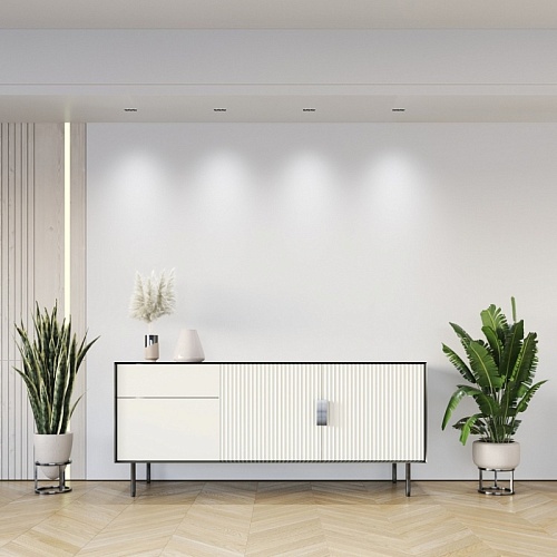 Серия встраиваемых светильников \"под шпатлевку\" со встроенными светодиодами для акцентного освещения. Имеют высокий индекс цветопередачи (CRI>90) для точной передачи цветовых оттенков. Переход между корпусом светильника и потолком абсолютно незаметен за счет технологии скрытого монтажа. Утопленный источник света обеспечивает высокий уровень зрительного комфорта и исключает слепящий эффект. Съемный блок светильника позволяет защитить плафон от загрязнений и повреждений при монтаже.