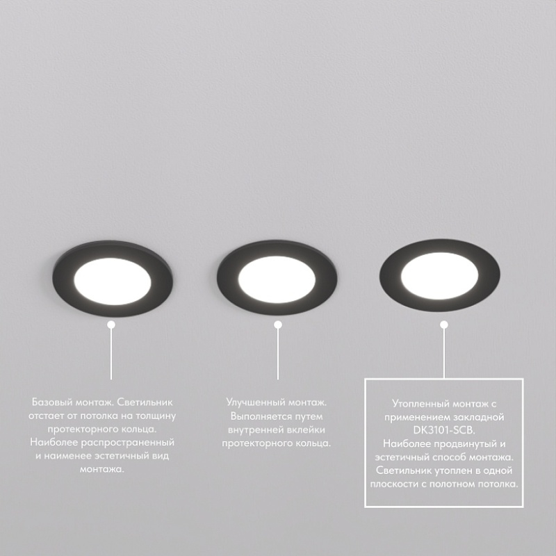 Закладная панель SCB для светильников DK3101. Позволяет добиться эффекта \"невидимости\" плафона в натяжных потолках за счет утопленного расположения светильника.