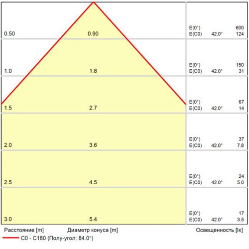 • Площадь освещения (м2)