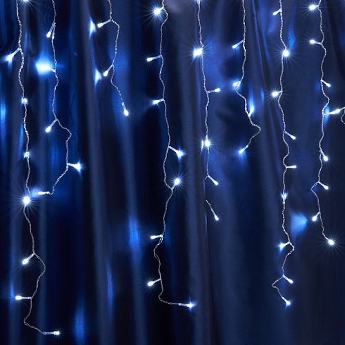 Характеристики Светодиодная гирлянда Feron CL22 бахрома, статичная, 4,5м*0,8м + 3м 230V синий c питанием от сети, белый шнур