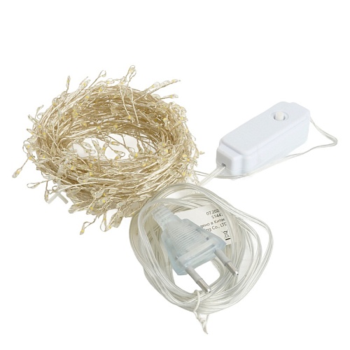Светодиодная гирлянда Кластер (на проволоке) Feron CL584 линейная 400 LED 12м 2700К, c питанием от сети 230V, прозрачный шнур 51447
