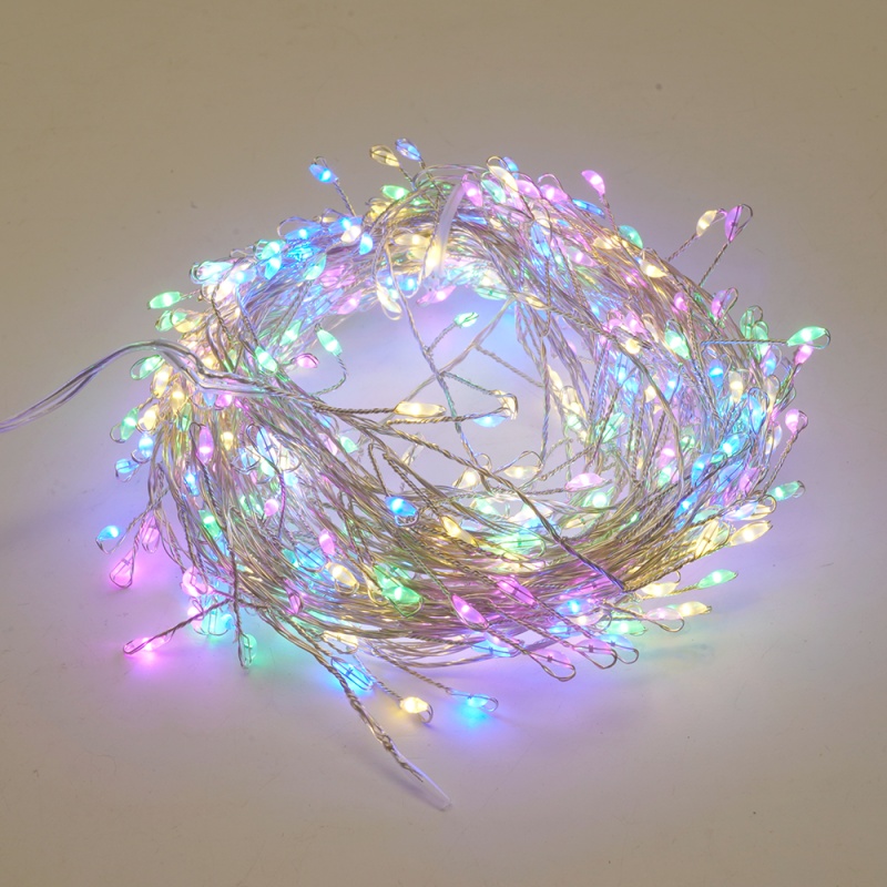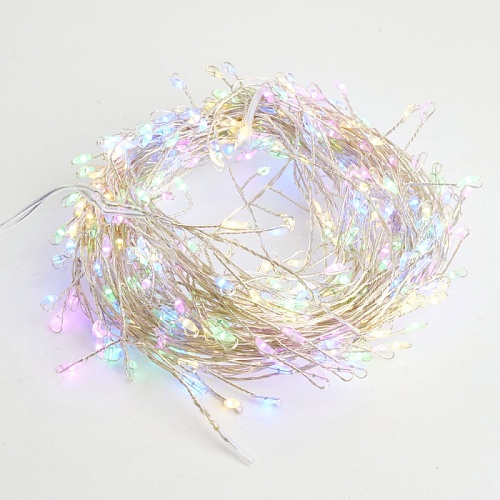 Светодиодная гирлянда Кластер (на проволоке) Feron CL584 линейная 12м мультиколор, c питанием от сети 230V, прозрачный шнур 51449