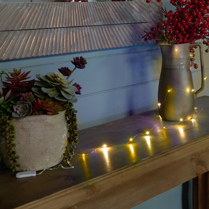 Светодиодная гирлянда Feron CL588 линейная Роса, 2700К, 2м, с питанием от батареек, прозрачный шнур 51439