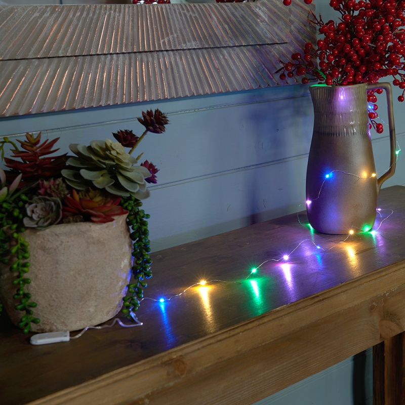 Светодиодная гирлянда Feron CL588 линейная Роса, мультиколор, 2м, с питанием от батареек, прозрачный шнур 51441