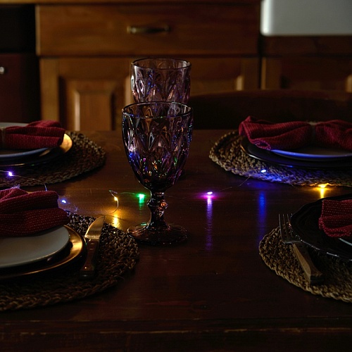 Светодиодная гирлянда Feron CL588 линейная Роса, мультиколор, 2м, с питанием от батареек, прозрачный шнур