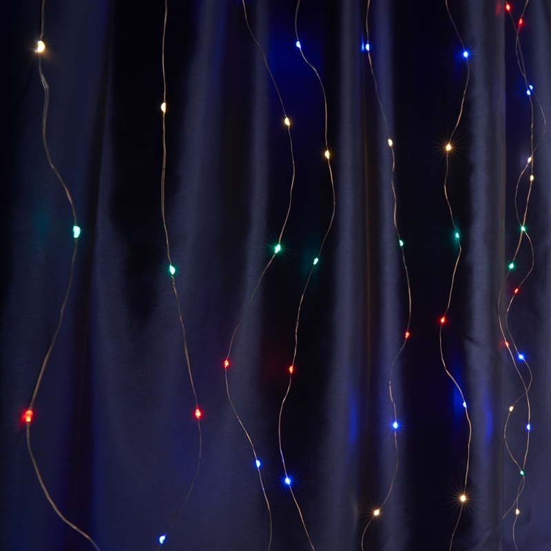 Характеристики Светодиодная гирлянда Feron CL591 занавес типа Роса 3*3м + 3м мультиколор USB, прозрачный шнур