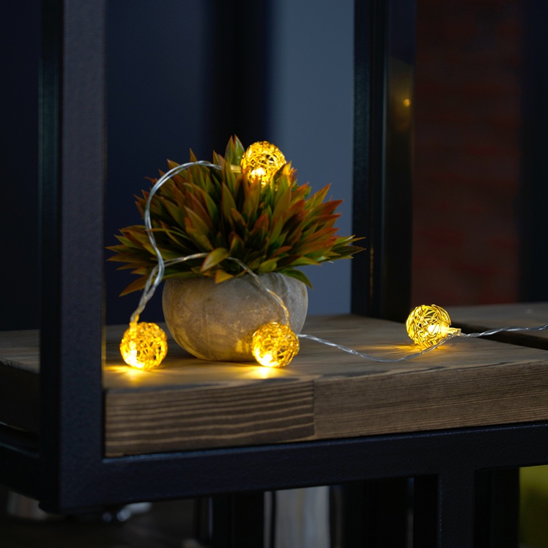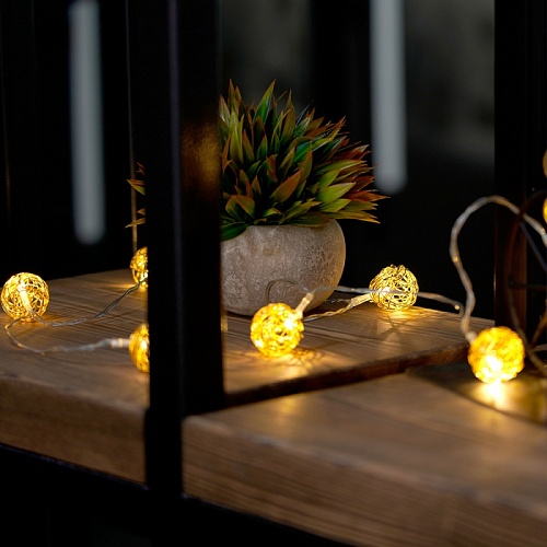 Светодиодная гирлянда Feron CL594 линейная интерьерная Золотые шарики, статичная, 2700K, 1.8 м с питанием от батареек, прозрачный шнур 51450