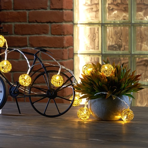 Отзывы о Светодиодная гирлянда Feron CL594 линейная интерьерная Золотые шарики, статичная, 2700K, 1.8 м с питанием от батареек, прозрачный шнур