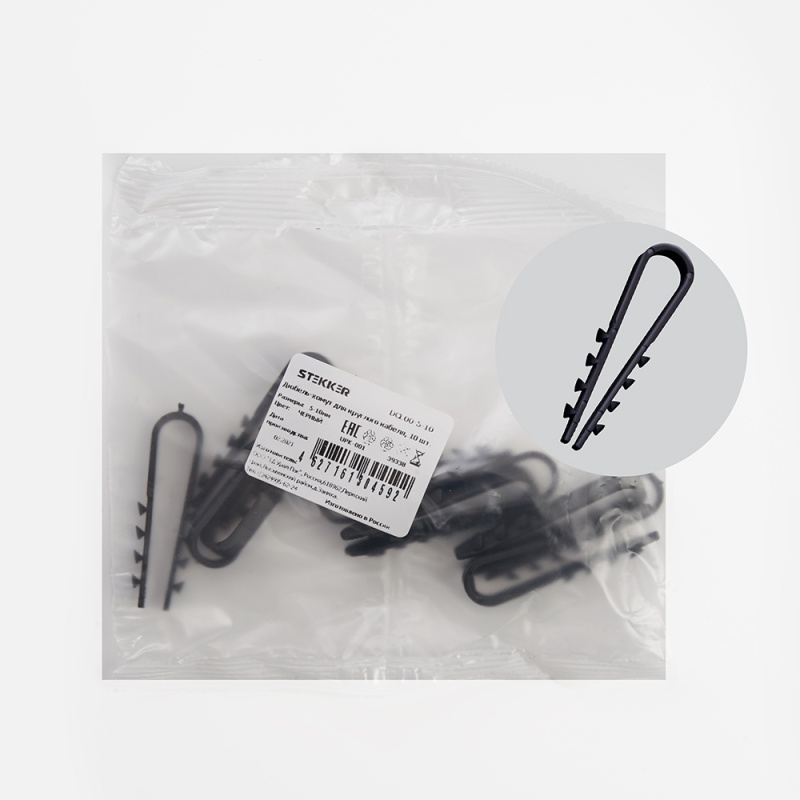 Характеристики Дюбель-хомут для круглого кабеля (5-10мм), STEKKER DCL00-5-10, полипропилен, белый, (DIY упаковка 10шт.