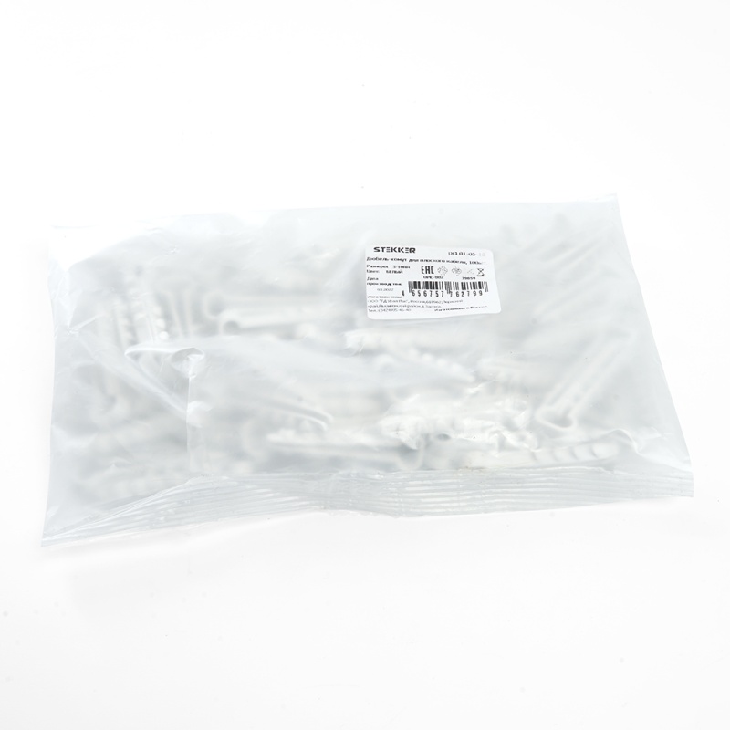Дюбель-хомут для плоского кабеля (5-10мм), STEKKER DCL01-05-10, полипропилен, белый (100шт.)