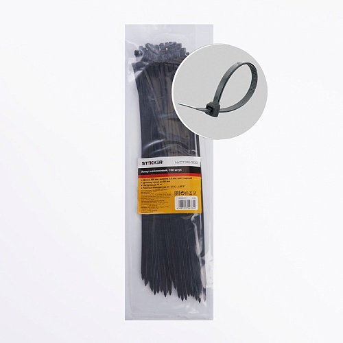 Отзывы о Хомут нейлоновый STEKKER NYCT36-300 3,6x300 мм, d пучка max 80 мм, нагрузка 18 кг, черный, упаковка 100 шт