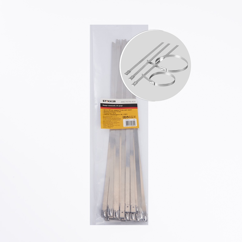 Хомут стальной STEKKER SSCTE79-400 7.9х400мм, d пучка max 114мм, нагрузка 120кг, серый, упаковка 25 шт