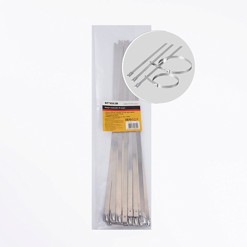Характеристики Хомут стальной STEKKER SSCTE79-400 7.9х400мм, d пучка max 114мм, нагрузка 120кг, серый, упаковка 25 шт