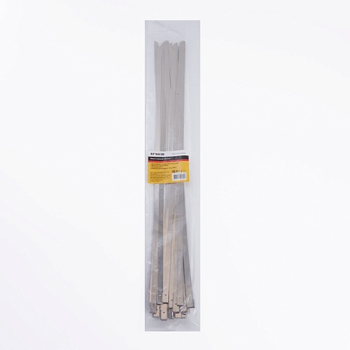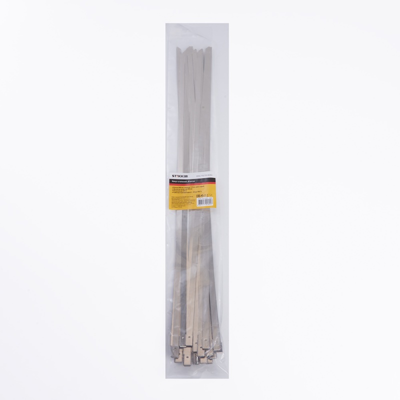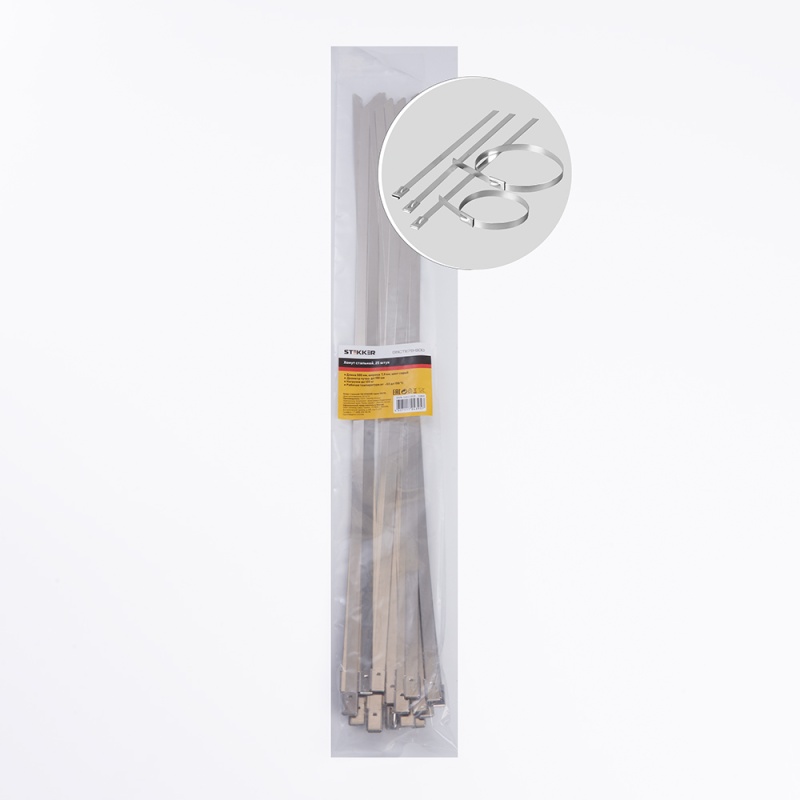 Характеристики Хомут стальной STEKKER SSCTE79-500 7.9х500мм, d пучка max 150мм, нагрузка 120кг, серый, упаковка 25 шт