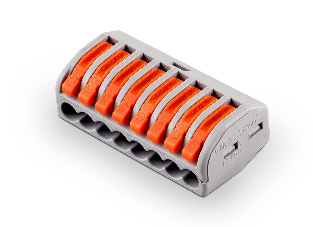 Характеристики Cтроительно-монтажная клемма 8-проводная STEKKER, LD222-418 (5 штук в упаковке)