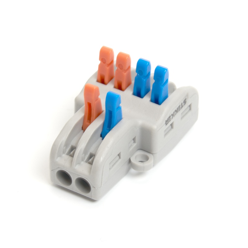 Отзывы о Клемма монтажная д/ подкл. фазн. проводников STEKKER, LD222-424, 2 контактные группы, 1ввод,2вывода на полюс (DIY упак 2 шт)