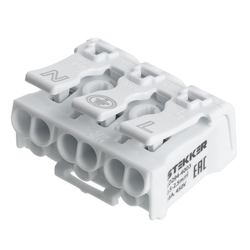 Характеристики Клемма монтажная STEKKER, LD294-4003, для подключения фазных проводников, 3 контактные группы (3 ввода, 3 вывода на полюс)