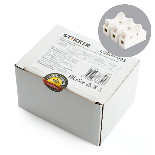 Характеристики Клемма самозажимная 3-х контактная STEKKER, LD900-003