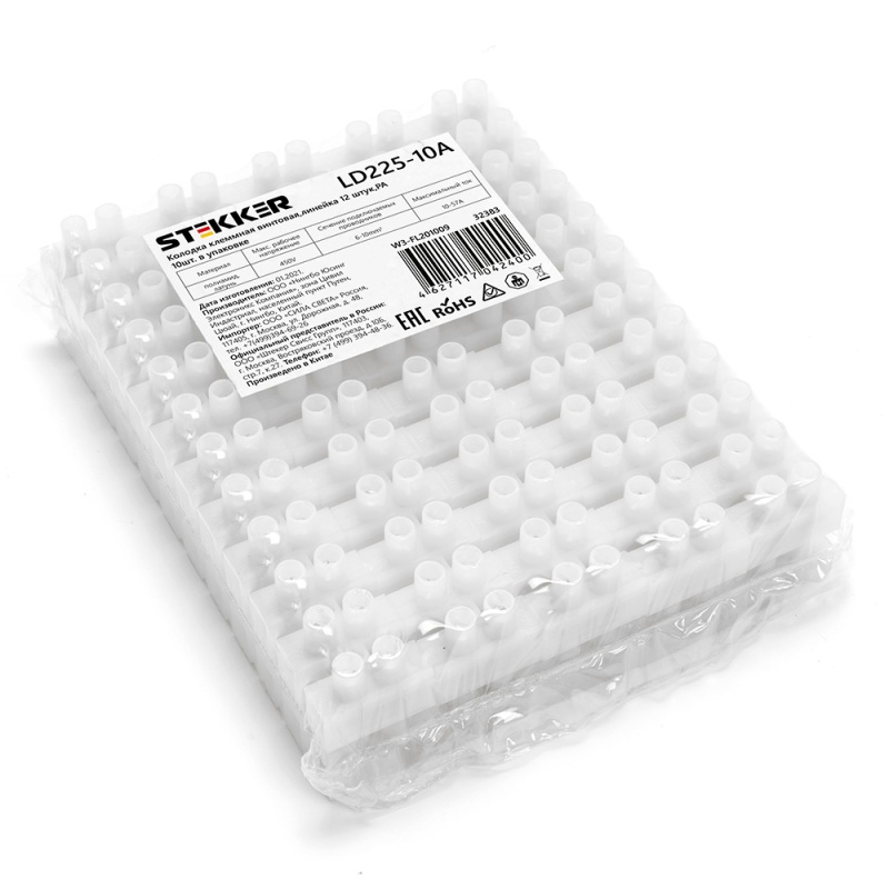Колодка клеммная винтовая STEKKER, линейка 12 штук, полиамид, LD225-10A 32383