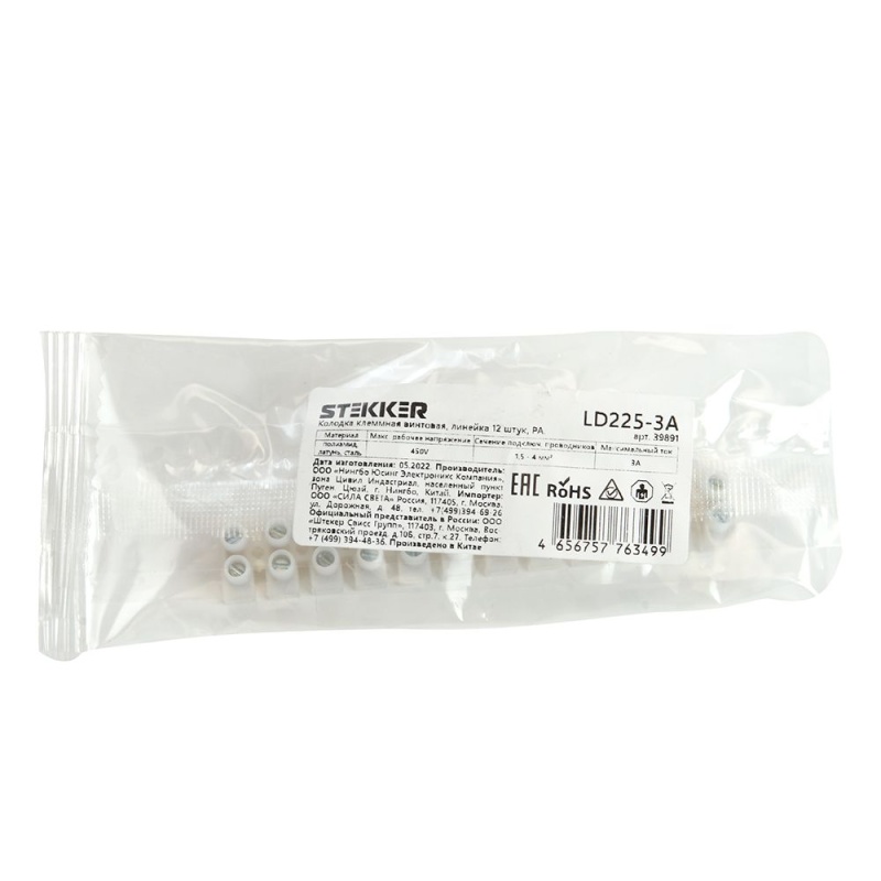 Характеристики Колодка клеммная винтовая STEKKER, линейка 12 штук, полиамид, LD225-3A DIY