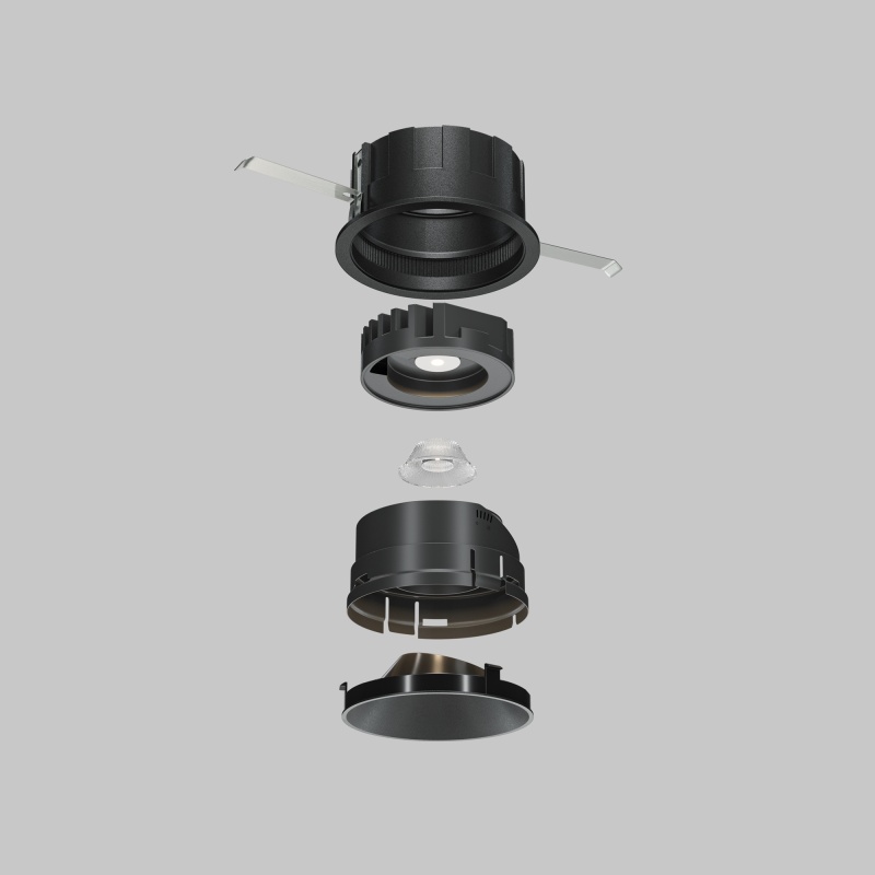 Встроенный утопленный источник света LED, обеспечивает мягкое рассеивание света. Поворотный механизм, позволит организовать акцентную подсветку зон и предметов интерьера. Сменные линзы и фильтры позволят изменить стандартный угол 36° на выбор от 15°-50° и сделать освещение более комфортным. Сменные рефлекторы в ассортименте, позволят подобрать цветовую гамму для большинства трендовых интерьеров.