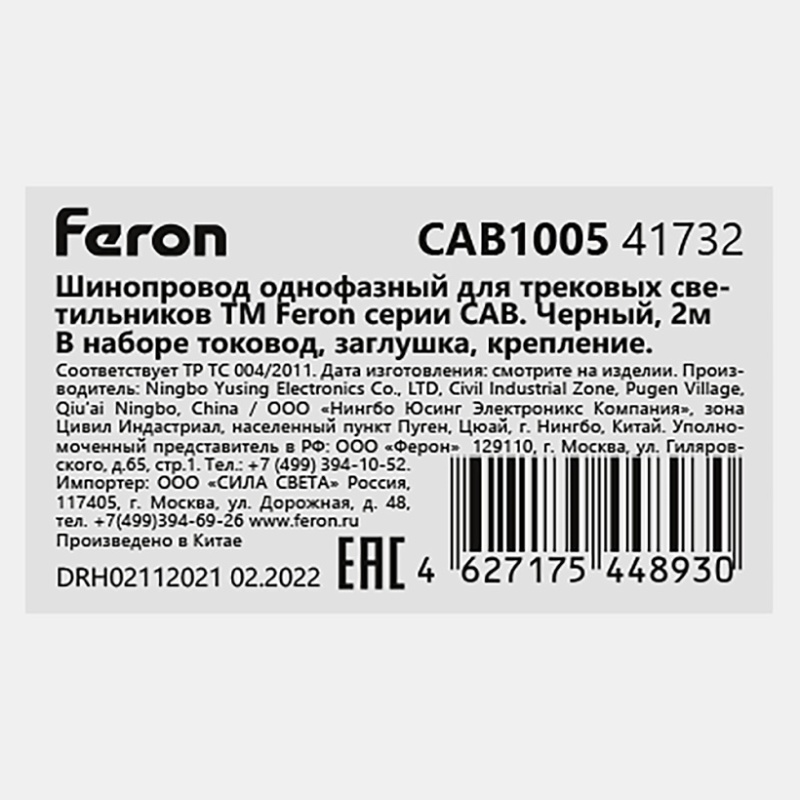 Шинопровод для трековых однофазных светильников, белый, 3м, в наборе токоввод, заглушка, крепление, CAB1005 41730