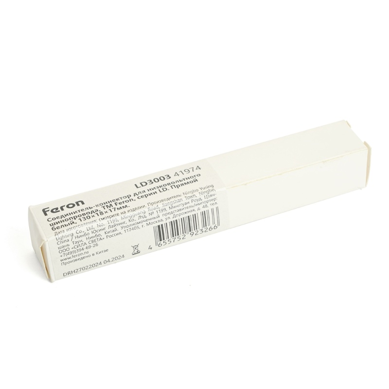 Соединитель-коннектор для низковольтного шинопровода, белый прямой, LD3003