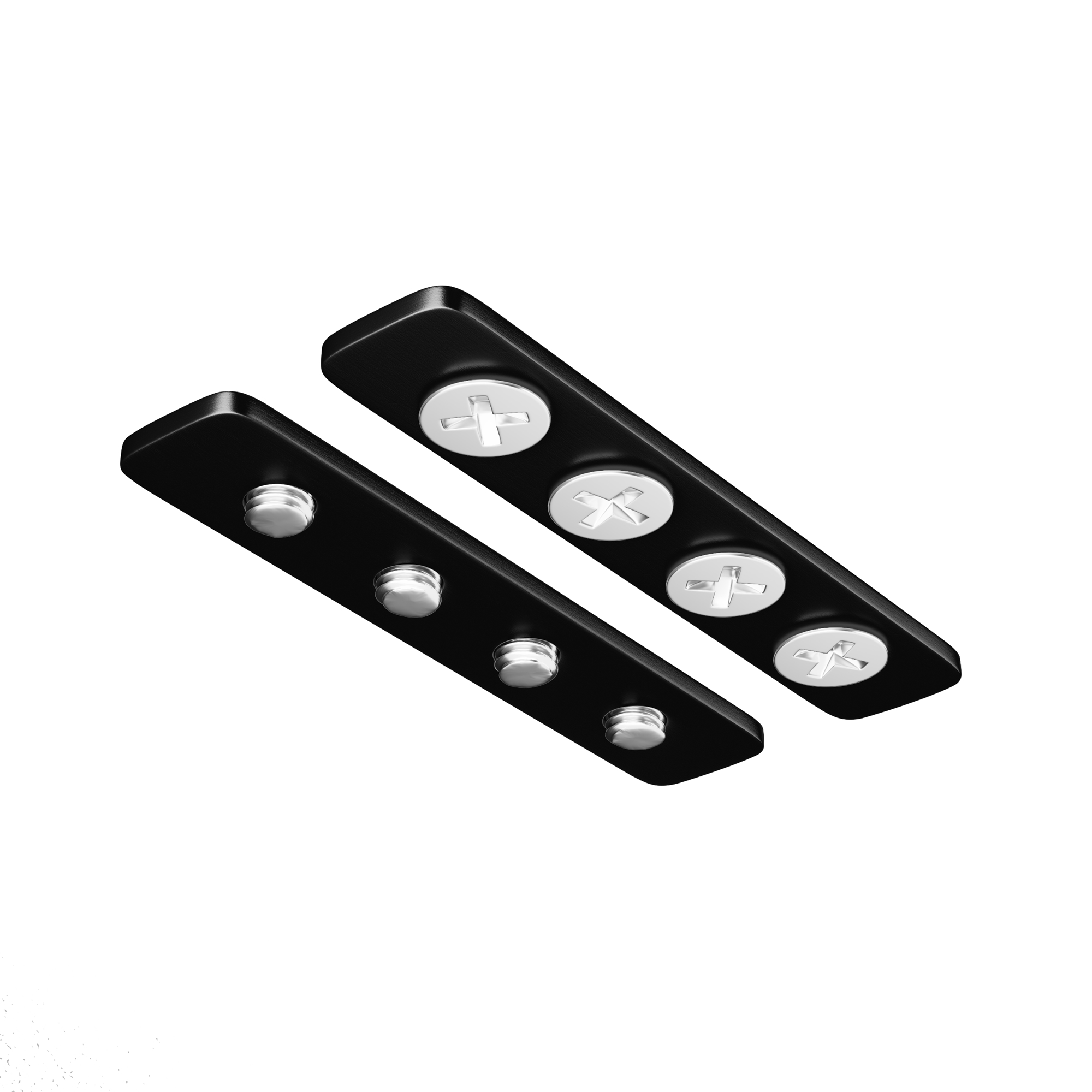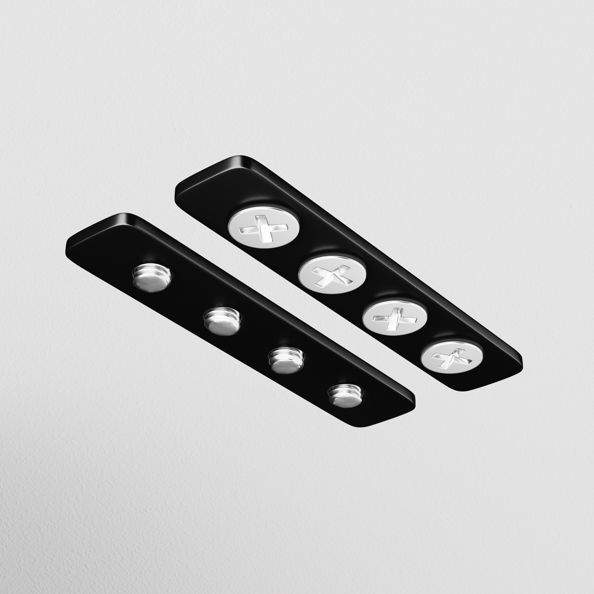Комплектующие для низковольтной магнитной трековой системы Exility в черном и белом цветах. Разнообразие аксессуаров позволяет собрать свою уникальную конструкцию для накладного монтажа, подвесного, встраиваемого под гипсокартон и встраиваемого в натяжные потолки.