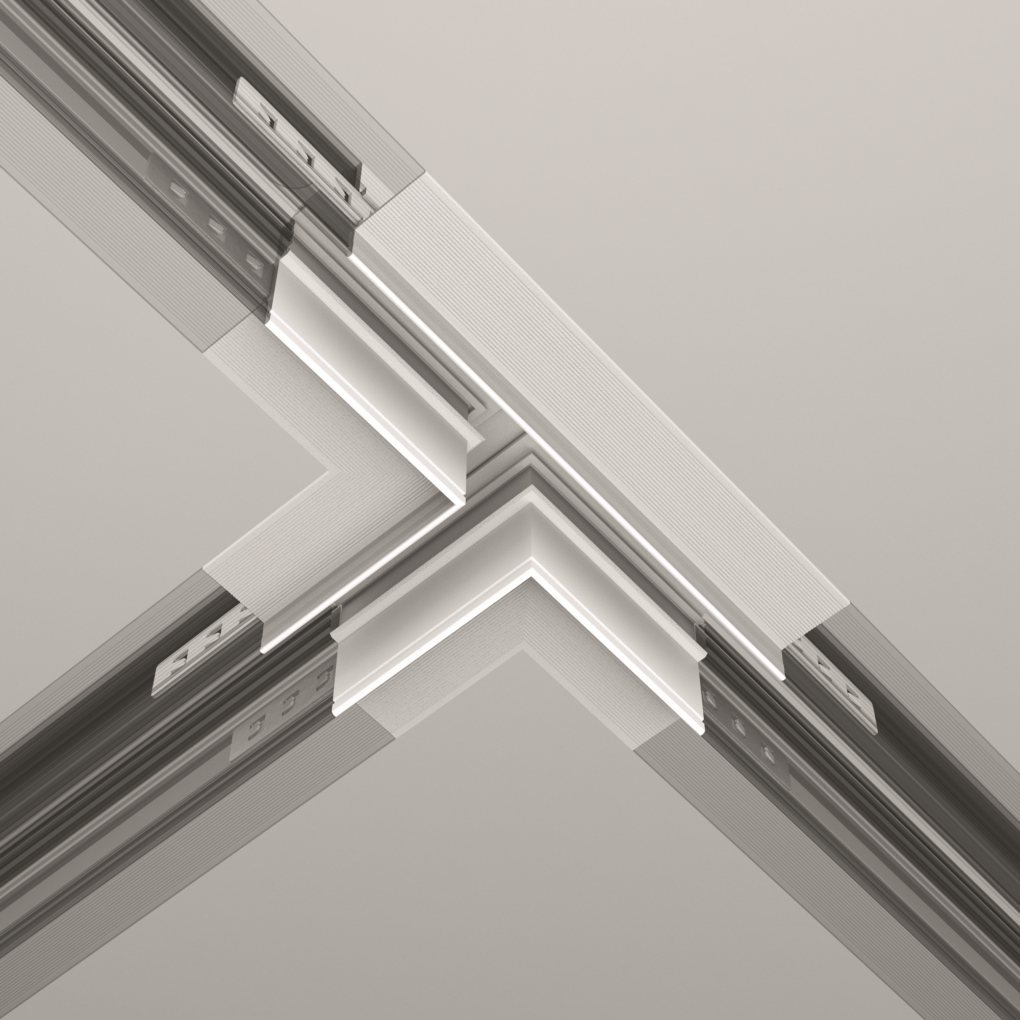 Комплектующие для низковольтной магнитной трековой системы Exility в черном и белом цветах. Разнообразие аксессуаров позволяет собрать свою уникальную конструкцию для накладного монтажа, подвесного, встраиваемого под гипсокартон и встраиваемого в натяжные потолки.