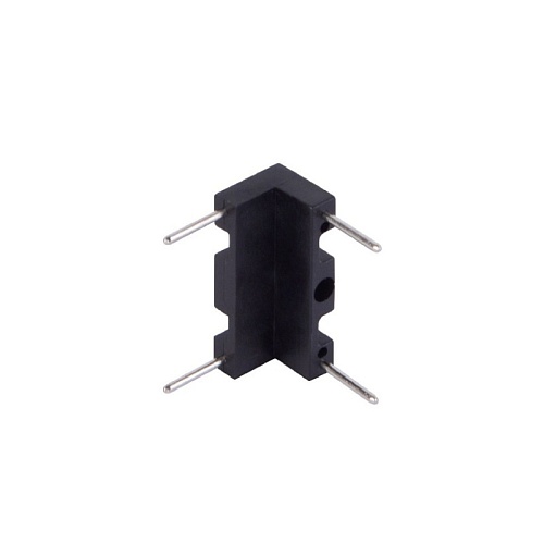 Угловой коннектор черного цвета для перехода в перпендикулярную плоскость.