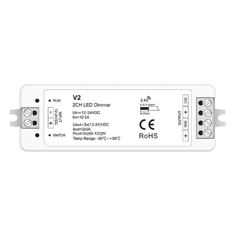 Пластик, 10A, 120W, 3 канала; контроллер для MIX ленты, может димировать и изменять цветовую темпиратуру