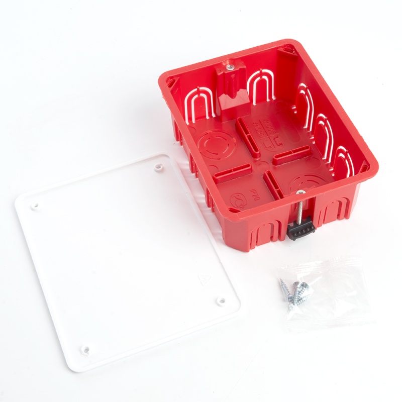 Коробка монтажная для полых стен, с пластиковыми зажимами, с крышкой, 120*92*45мм STEKKER EBX30-02-1-20-120, красный
